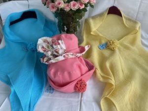 Minulta löytyvät hatut niin talveen, kevääseen kuin kesäänkin. Mukana myös harsopellavasta ponchot, keepit, ruusut, huivit. Uutena tuotteena villa ponchot, joista erilaisia kuoseja. Miniatyyrituotteet nukketaloon.
